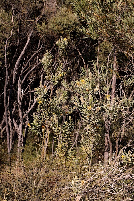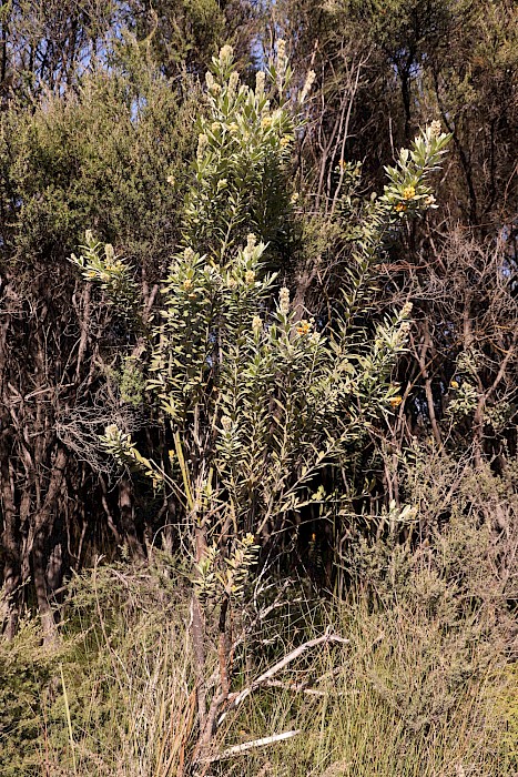 Banksia spp are similarly silky but flowers are different.