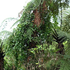 Seeds are moderately to well-dispersed, moderate growth rate, scrambles over most species, grows to canopy, and forms dense, long-lived masses. Moderately tolerant of shade, drought or damp, wind, salt, differing soil types, and damage.
