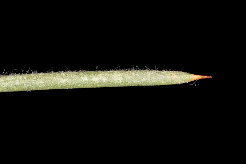 Prickly, woody, spreading, evergreen shrub (<3m tall) with hairy stems, and stiff, hairy, needle-like leaves (30-80 x 1 mm) with sharp pointed ends. Small sparse clusters of white flowers (winter-summer) develop into round, woody seed capsules (20-30 x 14-25 mm) with wrinkled surfaces, which contain winged black seeds (30-33 x 10-14 mm).