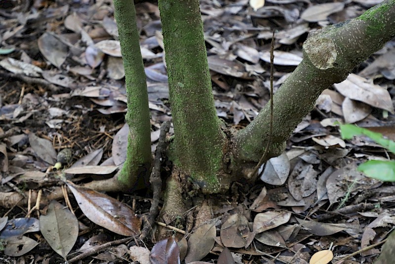 2. Cut down and paint stump (all year round): metsulfuron-methyl 600g/kg (2g/L). Leave on site to rot down. Can use on trunks and on aerial roots.